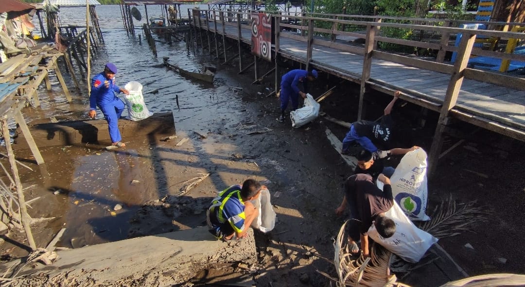 SUARA DAYAK.COM, Pangkalan Bun – Guna menjaga kebersihan lingkungan hidup, anggota Kapal Polisi XVIII-2004 Ditpolairud Polda Kalteng bersama masyarakat Desa Sai Kapitan, Kecamatan Kumai, Kabupaten Kotawaringin Barat melaksanakan giat sapu bersih sampah di DAS Kumai, Senin (29/12/2025).