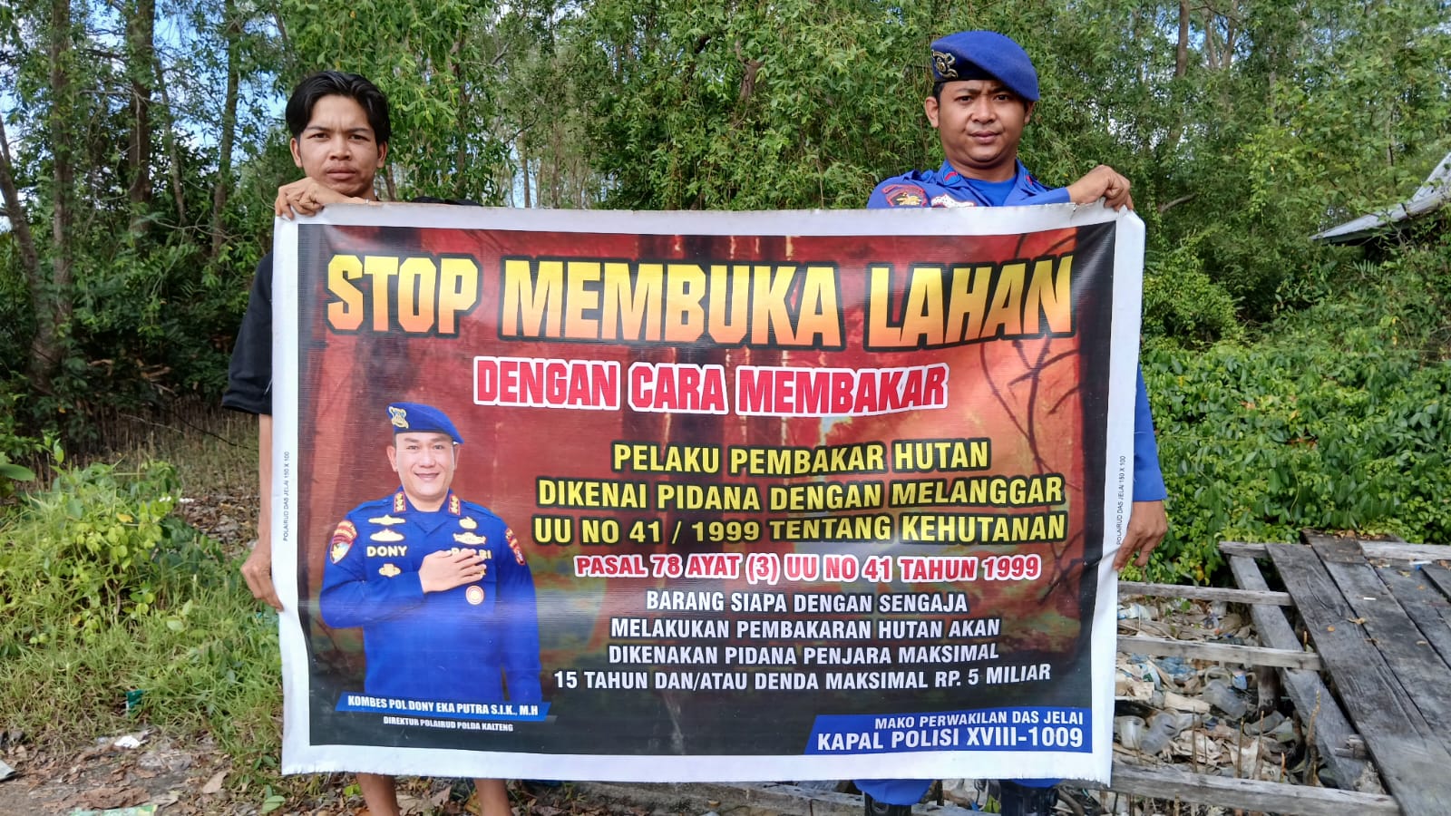 SUARA DAYAK.COM, Sukamara – Direktorat Kepolisian Perairan dan Udara (Ditpolairud) Polda Kalteng Markas Unit (Marnit) Daerah Aliran Sungai (DAS) Jelai, mengimbau kepada warga Desa Kuala Jelai tak membuka lahan dengan cara membakar, Kamis (5/2/2026).