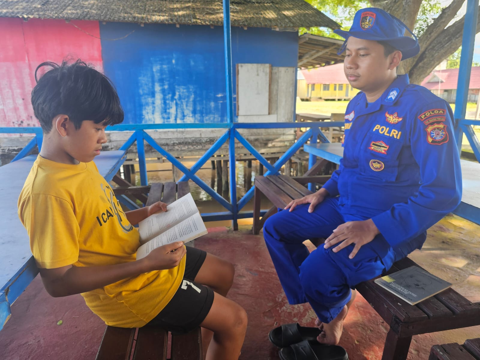SUARADAYAK.COM, Kuala Kapuas – Ditpolairud Polda Kalteng melalui KP XVIII-2007 mendampingi anak-anak yang berkunjung ke Pondok Baca Melek Huruf (PBMH) di Kabupaten Kapuas, Senin (27/4/2026) pagi.