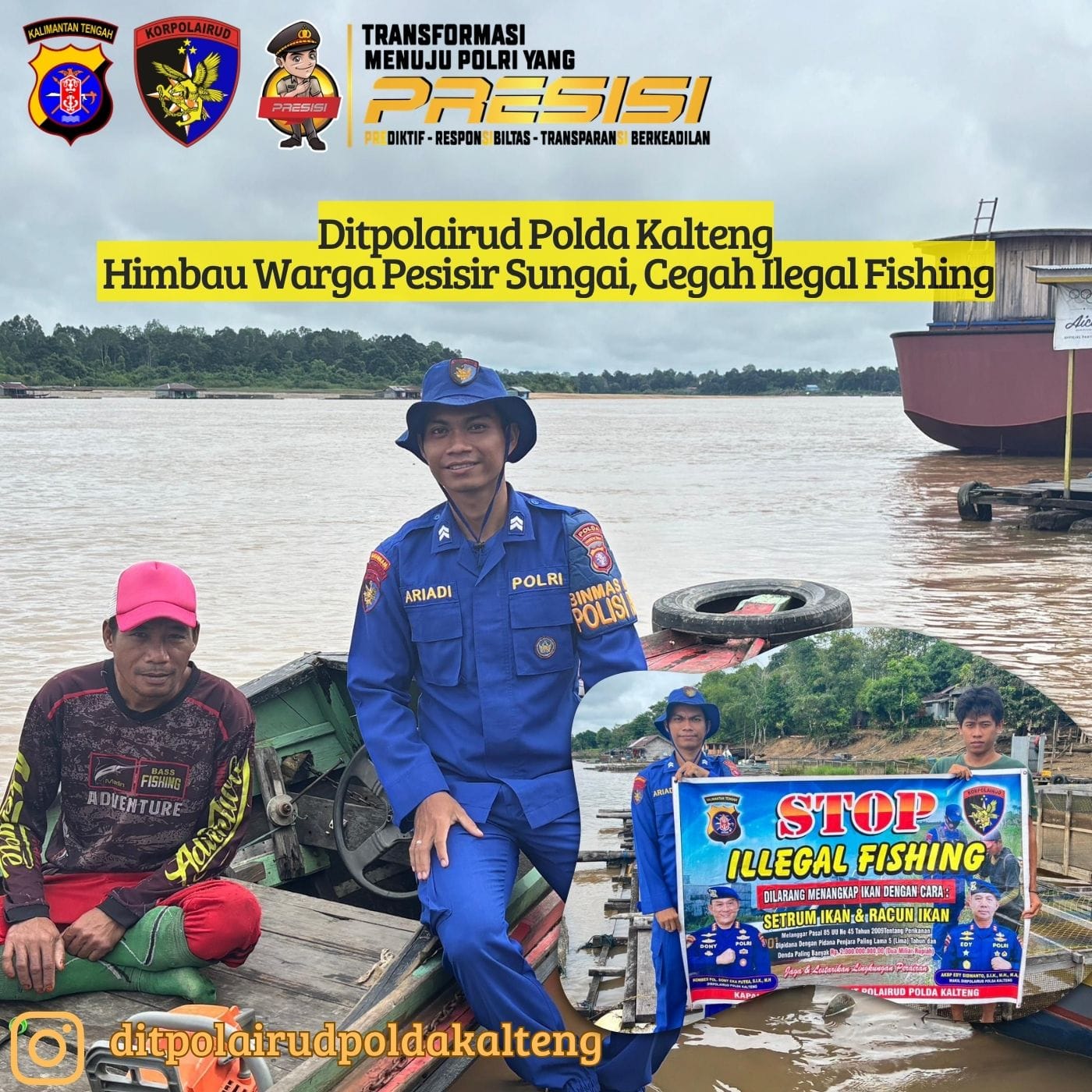 SUARADAYAK.COM, Buntok – Ditpolairud Polda Kalimantan Tengah melalui Kapal Patroli KP XVIII-2001, mengimbau warga tak menangkap ikan dengan menggunakan racun dan setrum, Minggu (26/4/2026).