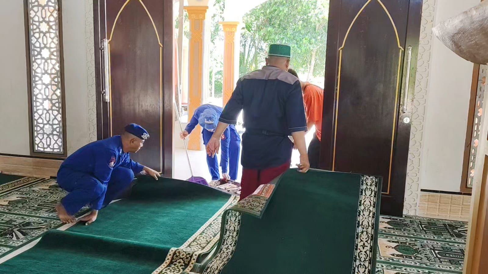Anggota KP XVIII-2006 Ditpolairud Polda Kalteng bersama masyarakat membersihkan masjid berkaitan dengan Gerakan Indonesia ASRI (Aman, Sehat, Resik, Indah), inisiatif nasional yang dicanangkan oleh Presiden Prabowo Subianto untuk menciptakan lingkungan bersih dan berkelanjutan.