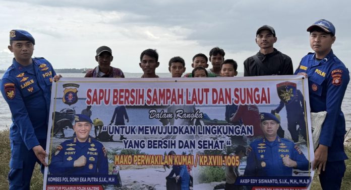 SUARADAYAK.COM, Pangkalan Bun – Demi menjaga kebersihan lingkungan hidup, anggota Kapal Polisi XVIII-2004 Ditpolairud Polda Kalteng bersama masyarakat Desa Kubu, Kecamatan Kumai, Kabupaten Kobar, melaksanakan sapu bersih sampah di pinggir sungai dan pantai, Jumat (3/4/2026).
