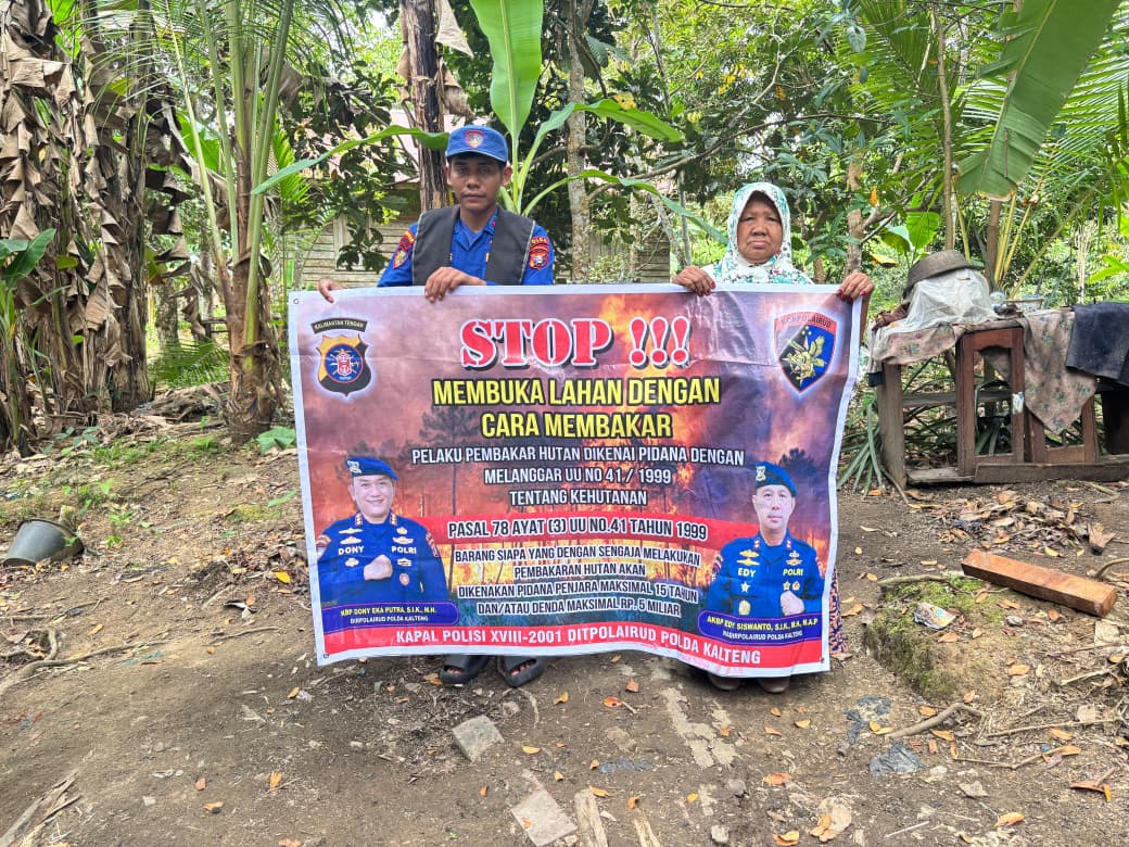 SUARADAYAK. COM, Buntok – Ditpolairud Polda Kalteng melalui personel Kapal Polisi XVIII-2001 mengajak masyarakat di Kabupaten Barito Selatan (Barsel) tak melakukan aktivitas yang dapat memicu kebakaran hutan dan lahan (karhutla), Sabtu (18/10/2025).