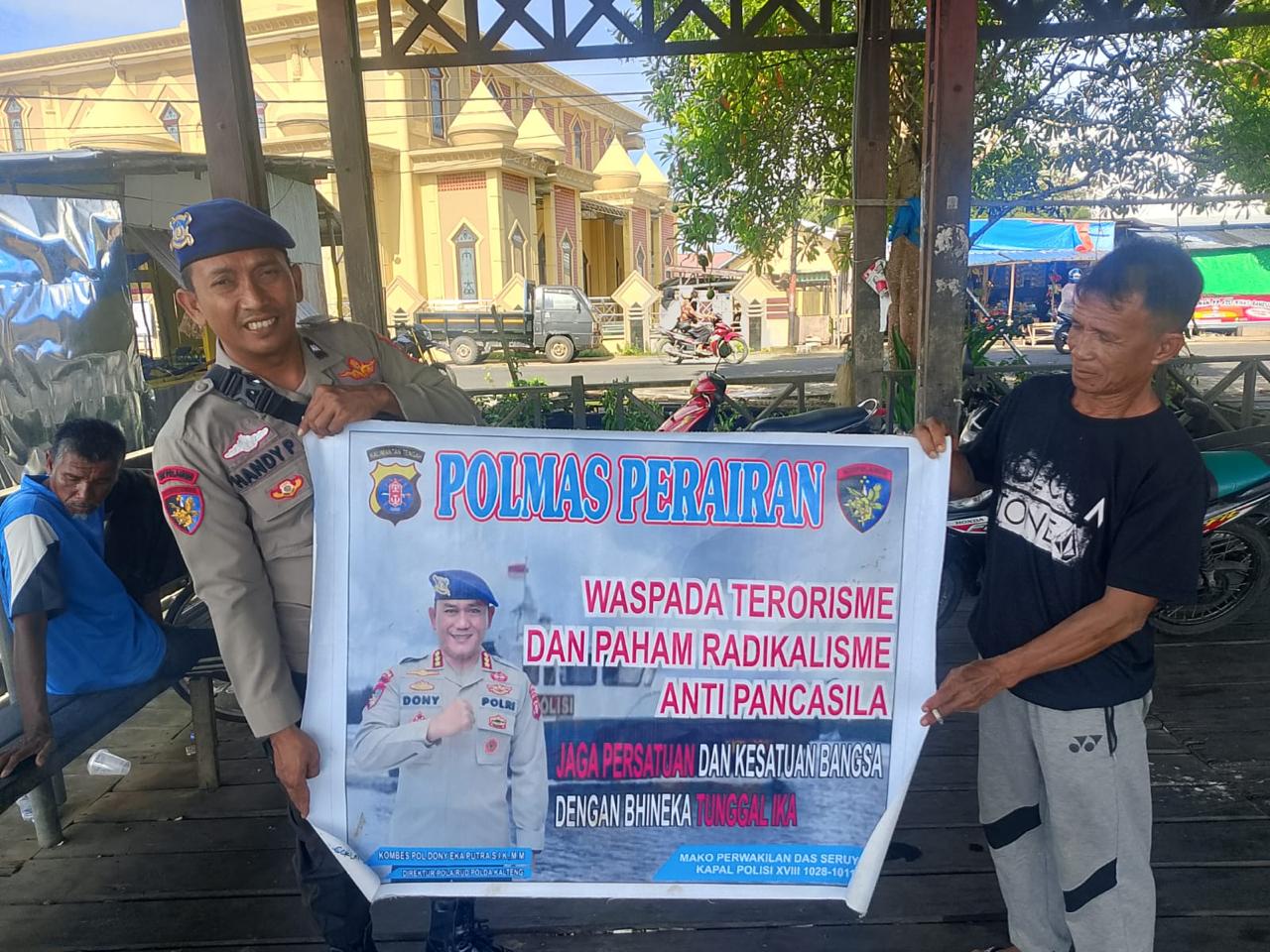SUARA DAYAK.COM, Kuala Pembuang – Personel Ditpolairud Polda Kalteng di DAS Seruyan menyambangi masyarakat, sambil mengimbau dan mengedukasi waspada terhadap terorisme dan radikalisme anti Pancasila, Jumat (14/11/2025).