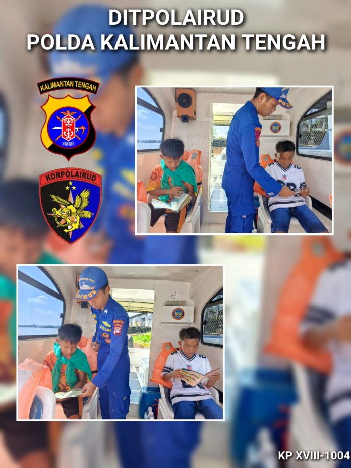 SUARA DAYAK.COM, Sampit – Ditpolairud Polda Kalteng menyediakan perpustakaan terapung bagi anak-anak yang berkunjung ke Kapal Melek Huruf (KMH) KP XVIII-1004 DAS Mentaya, Kabupaten Kotawaringin Timur, Rabu (2/3/2026).