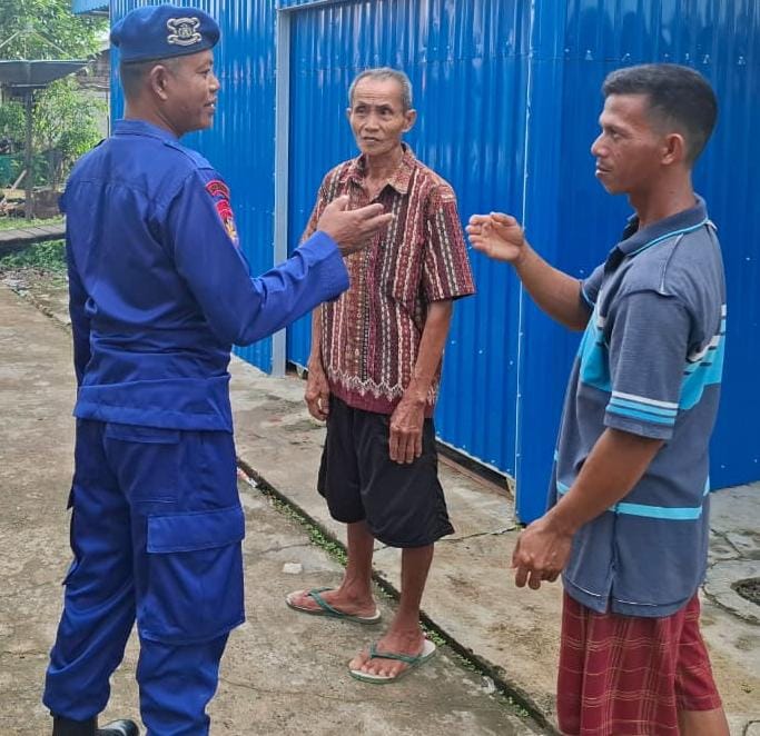 Petugas melakukan patroli di kawasan pemukiman warga, di mana petugas memberikan sosialisasi tentang pentingnya keamanan bersama dan mengajak masyarakat untuk aktif berperan dalam menjaga lingkungan.
