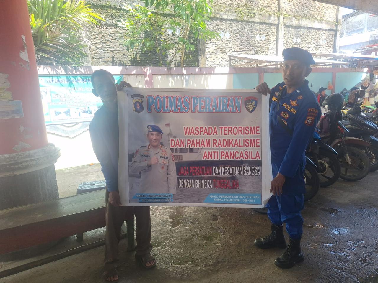 SUARADAYAK.COM, Kuala Pembuang – Personel Ditpolairud Polda Kalteng di DAS Seruyan, melaksanakan kegiatan sambang ke masyarakat sekitar untuk mengimbau dan mengedukasi tentang waspada terhadap terorisme dan paham radikalisme anti Pancasila, Minggu (5/10/2025).