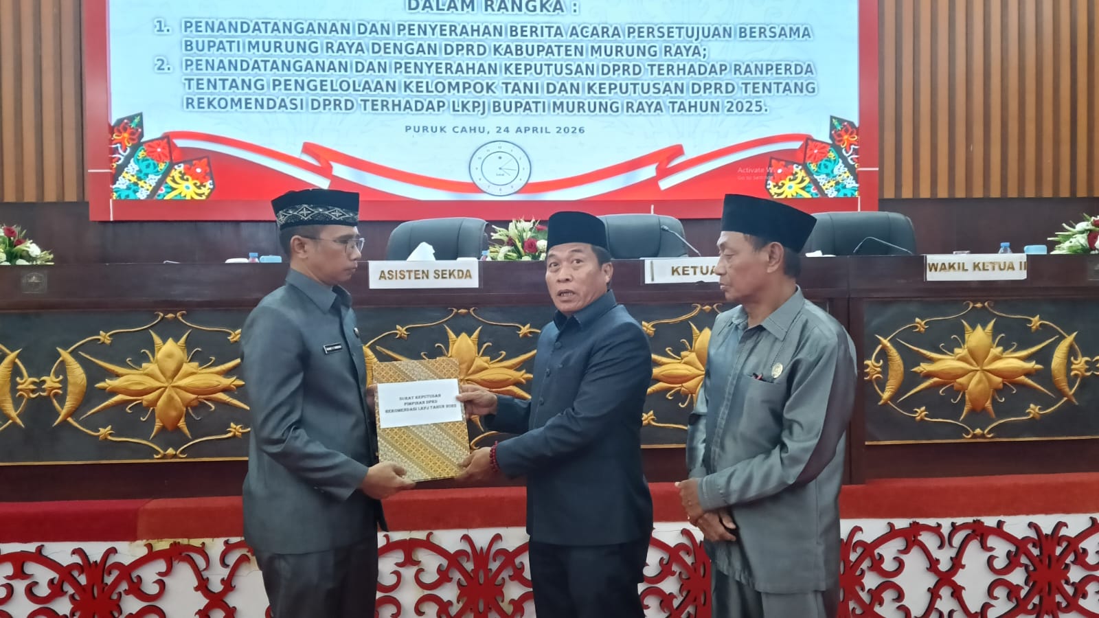 Suara Dayak.com, Puruk Cahu – Dewan Perwakilan Rakyat Daerah (DPRD) Kabupaten Murung Raya, Kalimantan Tengah, mengesahkan dua keputusan strategis dalam rapat paripurna yang digelar di Gedung DPRD Murung Raya, Jumat (24/4/2026).