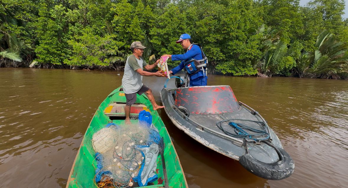 SUARA DAYAK.COM, Pangkalan Bun – Anggota Ditpolairud Polda Kalimantan Tengah Kapal Patroli XVIII-2004 DAS Kumai, membagikan bantuan sosial (bansos) kepada masyarakat di Desa Kumai Hulu, Kecamatan Kumai, Kabupaten Kobar, Kamis (8/1/2026).
