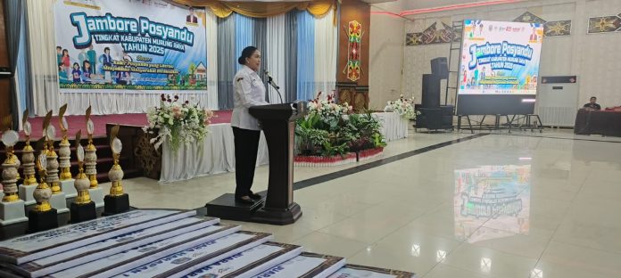 Kepala Dinas Pemberdayaan Masyarakat dan Desa (PMD) Murung Raya, Linda Kristiane, menegaskan bahwa pihaknya ingin menjadikan Murung Raya sebagai daerah yang mampu menunjukkan kualitas kader posyandu di tingkat nasional. “Kami ingin Murung Raya menjadi daerah percontohan. Kader posyandu kita harus bisa menunjukkan kualitasnya di tingkat nasional,” ujar Linda saat menutup Jambore Posyandu Tingkat Kabupaten Murung Raya Tahun 2025 yang berlangsung di Gedung Pertemuan Umum (GPU) Tira Tangka Balang pada Rabu (19/11/2025). Kegiatan itu menghadirkan ratusan kader posyandu dari berbagai kecamatan ini menjadi momentum penguatan kapasitas kader dalam mendorong pelayanan kesehatan masyarakat yang lebih optimal.