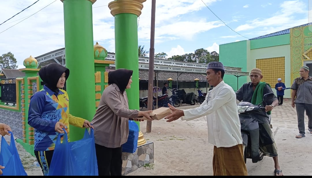Puluhan paket makanan dibagikan kepada masyarakat di Masjid Raudhatul Jannah, Desa Belanti.