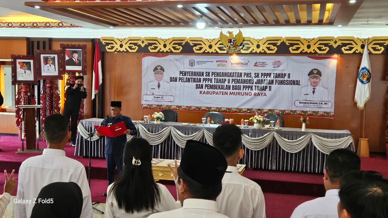 SuaraDayak.com, Puruk Cahu – Bupati Murung Raya, Kalimantan Tengah, Heriyus, melantik sekaligus menyerahkan Surat Keputusan (SK) pengangkatan kepada 70 Pegawai Pemerintah dengan Perjanjian Kerja (PPPK) tahap II formasi 2024 di Aula Setda Gedung B Puruk Cahu, Jumat (12/9/2025).