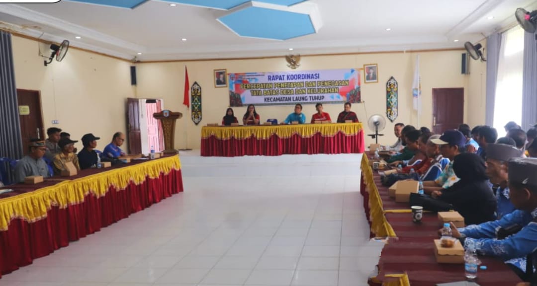 Suaradayak.com, Puruk Cahu -Bupati Murung Raya, Heriyus yang diwakili oleh Kepala Bagian Pemerintahan Sekretariat Daerah Kabupaten Murung Raya, Simon Loteh, secara resmi membuka sekaligus memimpin Rapat Koordinasi (Rakor) Percepatan Penetapan dan Penegasan Tata Batas Desa, Kelurahan Laung Tuhup bertempat di aula kantor Kecamatan Laung Tuhup, Kamis (13/11/2025).