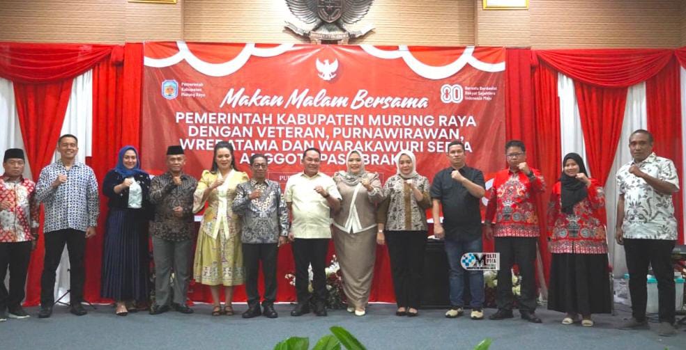 SuaraDayak.com, Puruk Cahu – Dalam rangka memperingati HUT Ke – 80 Republik Indonesia, Pemerintah Kabupaten Murung Raya (Mura) menggelar acara ramah tamah makan malam bersama veteran, purnawirawan, wredatama, warakawuri, serta anggota Paskibraka di Puruk Cahu, Minggu (17/8/2025) malam.