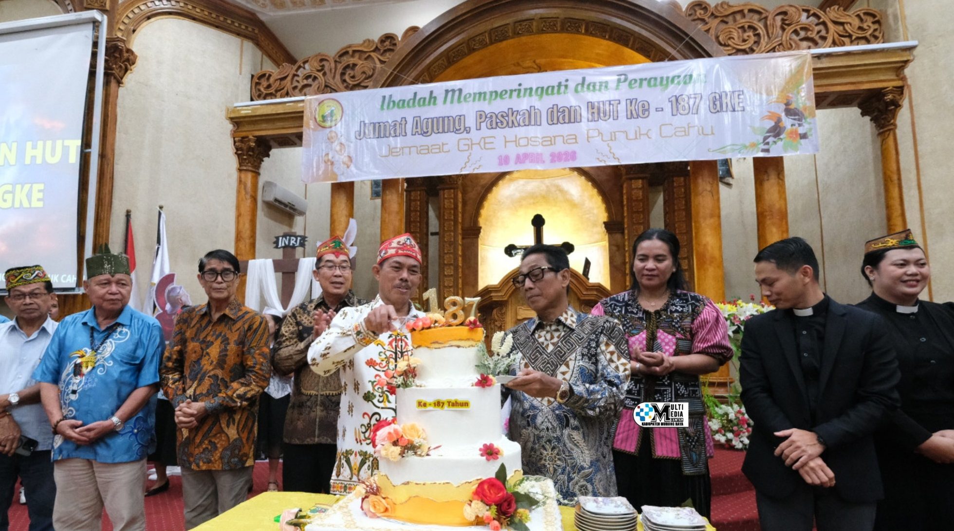Suara Dayak.com, Puruk Cahu – Bupati Murung Raya (Mura), Heriyus menghadiri peringatan Jumat Agung, Paskah, sekaligus Hari Ulang Tahun (HUT) ke-187 Gereja Kalimantan Evangelis (GKE) yang digelar di Gereja Hosana Puruk Cahu, Jumat (10/4/2026).