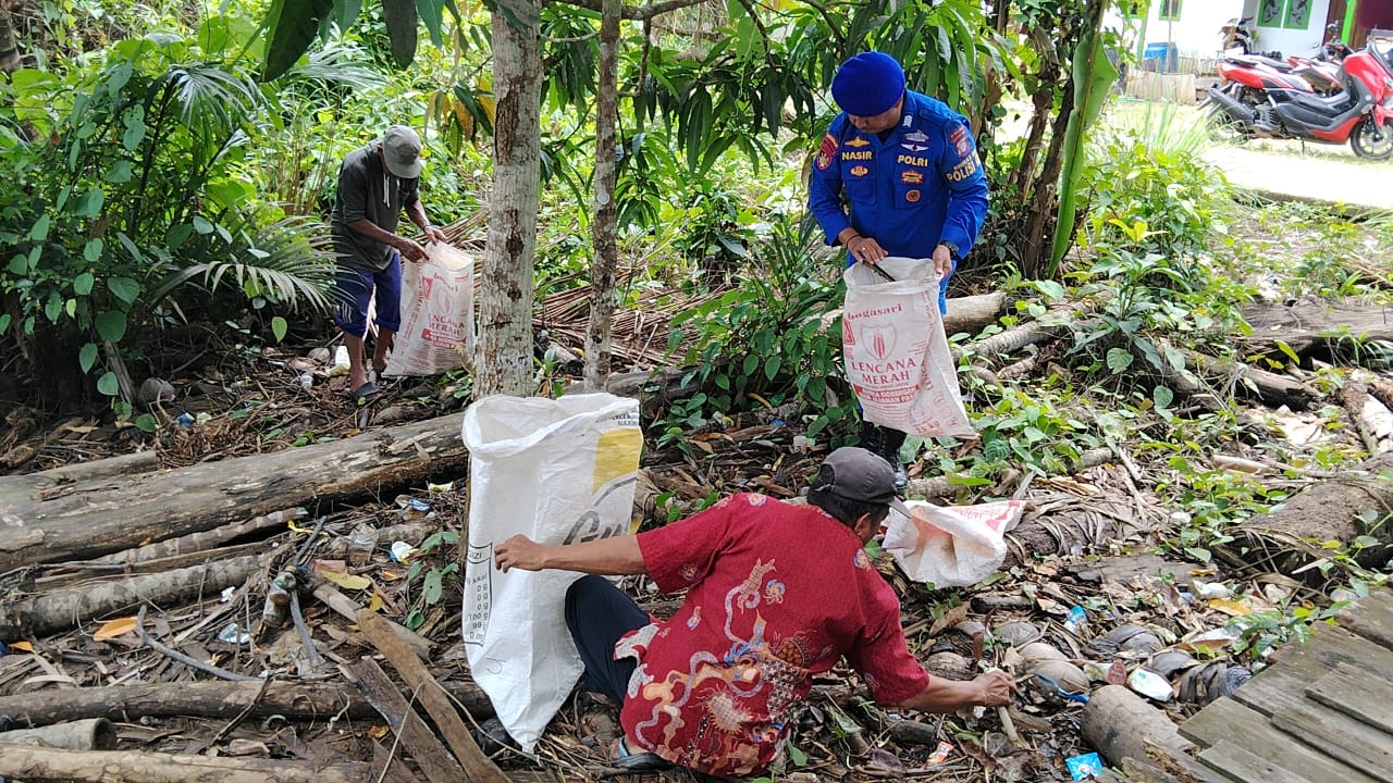 SUARA DAYAK.COM, Pulang Pisau – Personel Ditpolairud Polda Kalimantan Tengah bersama warga membersihkan sampah di pinggir sungai Desa Tanjung Perawan, Kecamatan Kahayan Kuala, Kabupaten Pulang Pisau, Minggu (1/2/2026).