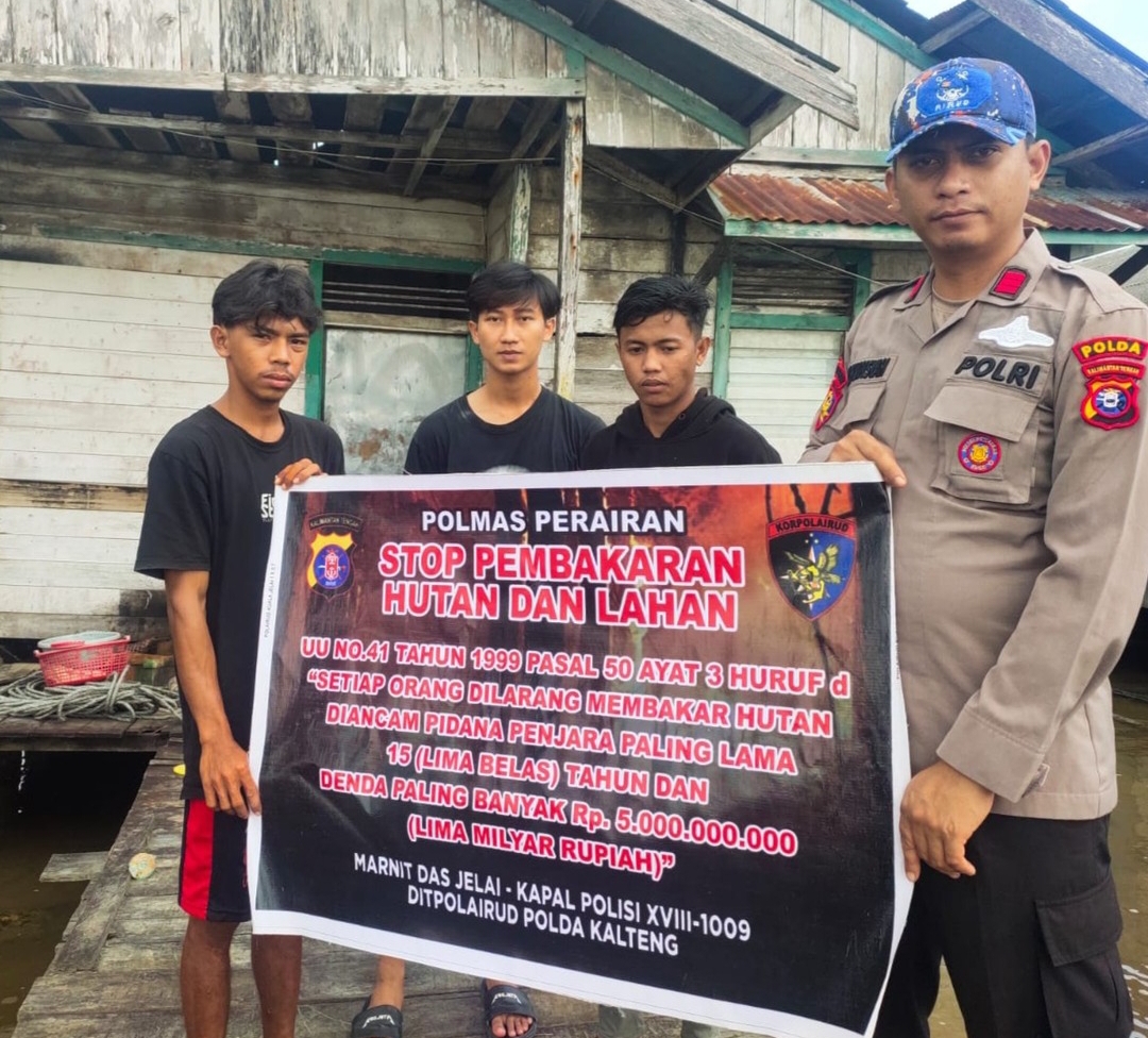 SUARA DAYAK.COM, Sukamara – Ditpolairud Polda Kalteng Markas Unit (Marnit) Jelai mengimbau kepada warga Desa Kuala Jelai tak membuka lahan dengan cara membakar, Kamis (22/11/2025).