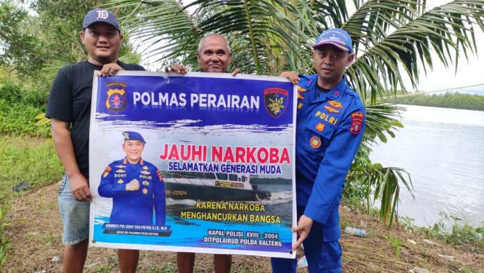 SUARA DAYAK.COM, Pangkalan Bun – Personel Ditpolairud Polda Kalteng terus mengintensifkan kegiatan imbauan anti narkoba kepada masyarakat di DAS Kumai, Kabupaten Kobar, Jumat (23/1/2026).
