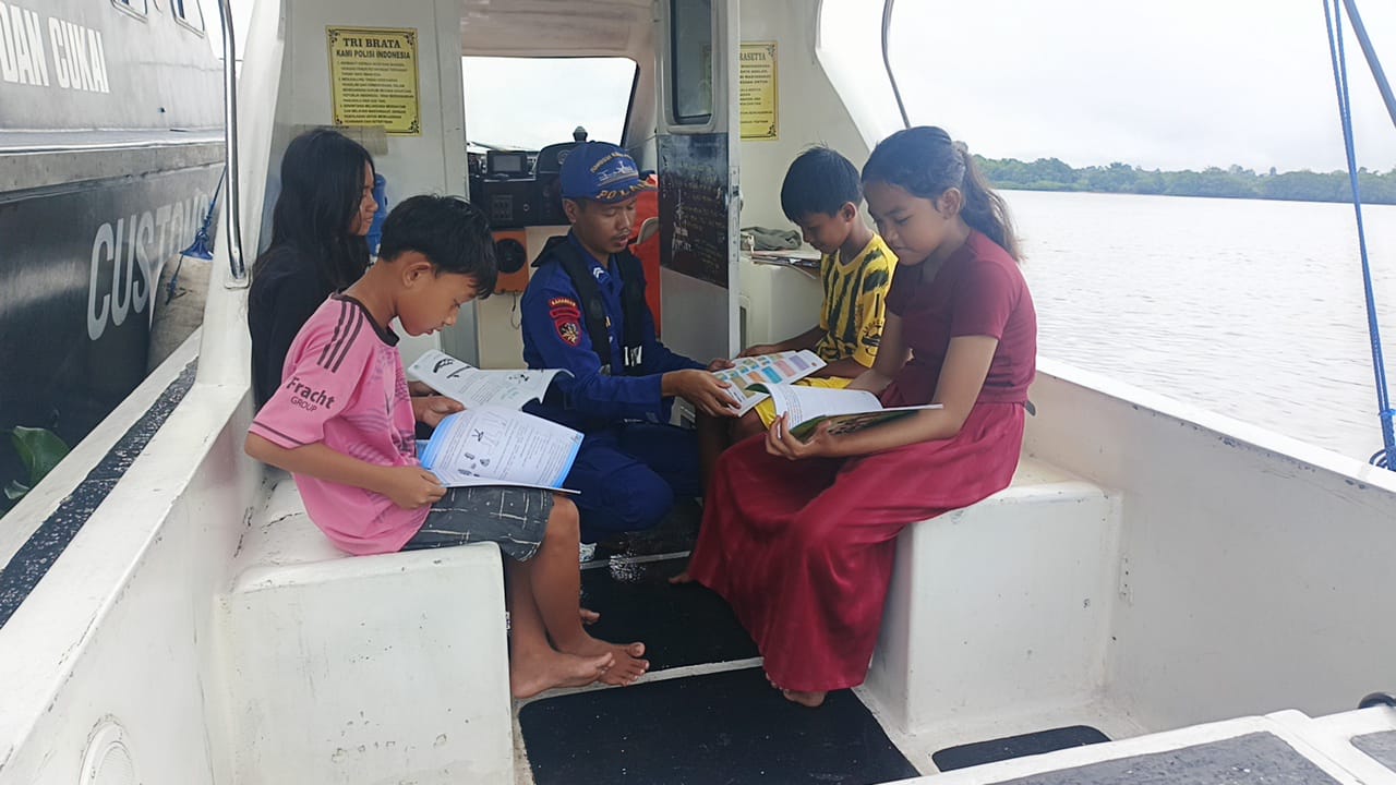 SUARADAYAK.COM, Sampit – Ditpolairud Polda Kalteng mengarahkan potensi membaca anak-anak yang berkunjung ke Kapal Melek Huruf (KMH) KP XVIII-1004 DAS Mentaya, Kabupaten Kotawaringin Timur, Rabu (1/4/2026).