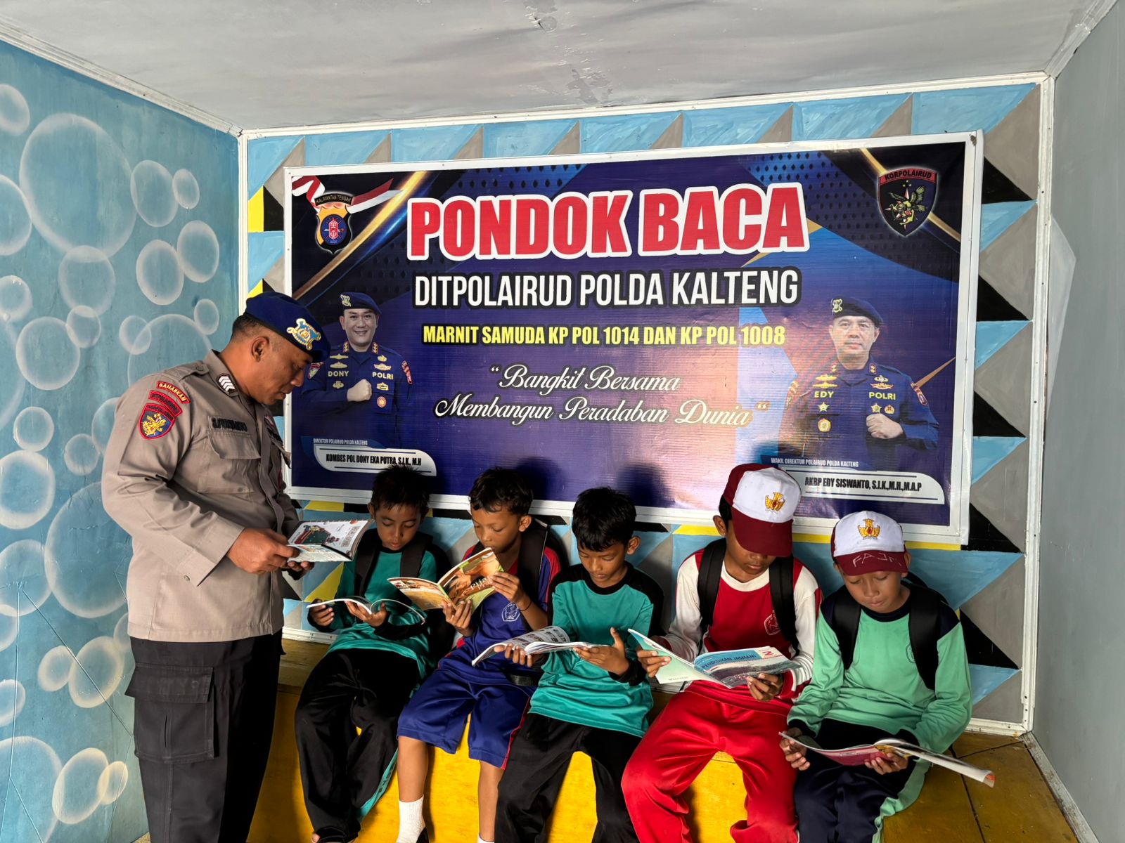 Dalam suasana yang hangat dan penuh semangat, puluhan anak-anak dari desa pesisir sekitar Marnit Samuda tampak antusias membaca dan mendengarkan cerita yang dibacakan oleh personel polisi.