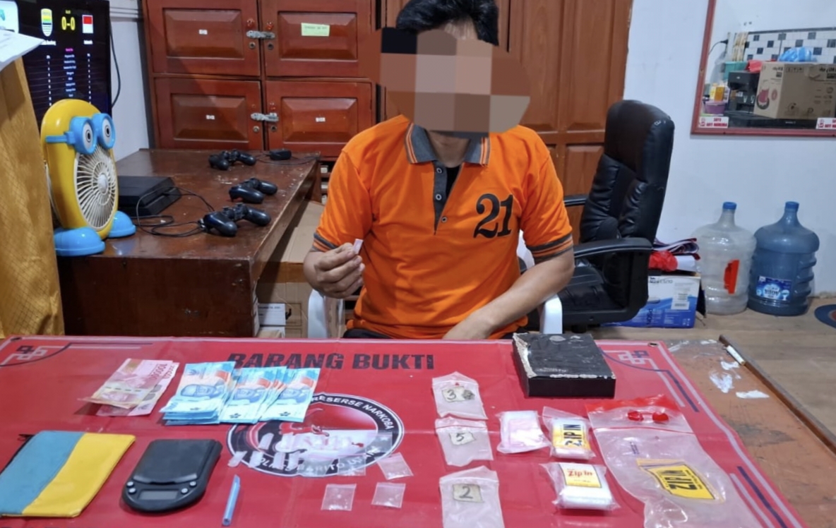 Polisi menangkap seorang tersangka pengedar sabu, berinisial SM (39). Peristiwa pengungkapan kriminal narkotika ini terjadi di sebuah rumah pribadi di Jalan Houling KM 1 PT. TOP (Talent Orbit Prima), RT 4, Rabu (18/3/2026), sekitar pukul 14.15 WIB.