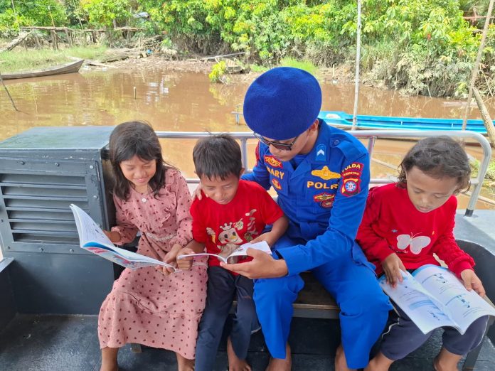 SUARADAYAK.COM, Sampit – Demi meningkatkan literasi sekaligus mendekatkan diri dengan masyarakat pesisir, personel KP 2005 DAS Mentaya dari Direktorat Polisi Air dan Udara (Ditpolairud) Polda Kalimantan Tengah (Kalteng), terus menggiatkan program humanis Pondok Baca bagi anak-anak yang tinggal di wilayah bantaran sungai, Senin (9/3/2026).