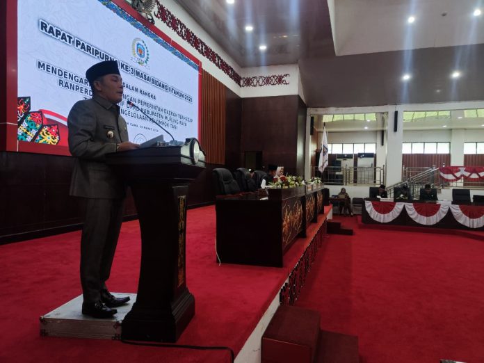 Dukungan tersebut disampaikan Bupati Murung Raya Heriyus melalui Wakil Bupati Rahmanto Muhidin saat menyampaikan pandangan pemerintah terhadap Raperda tersebut dalam Rapat Paripurna ke-3 Masa Sidang I Tahun 2026 di Kantor DPRD Murung Raya, Puruk Cahu, Senin (9/3/2026).