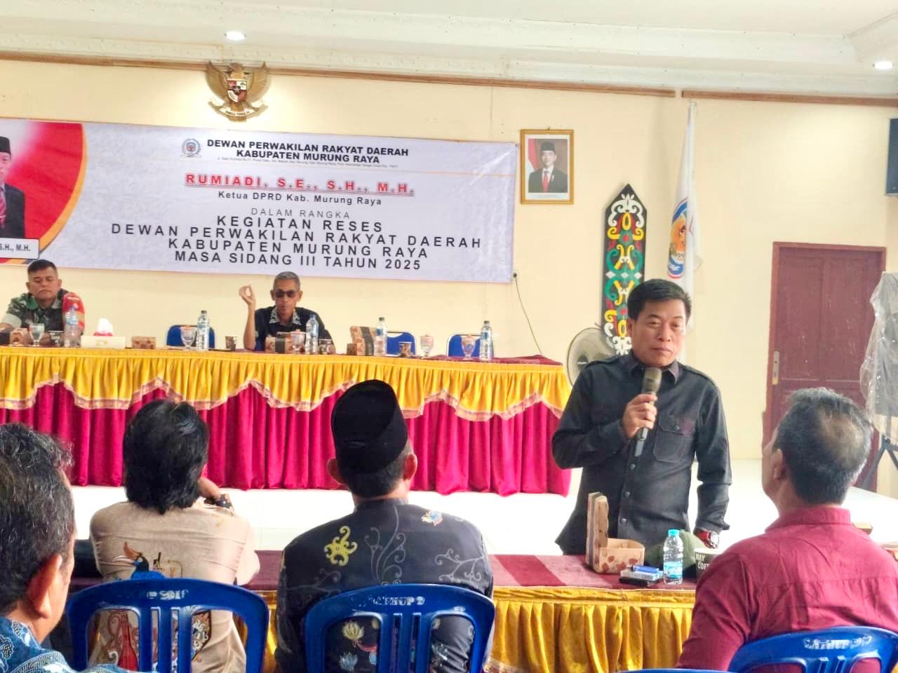 Suaradayak.com, Puruk Cahu – Masa reses merupakan bagian penting dari tugas dan tanggung jawab anggota DPRD dalam menjaring aspirasi masyarakat di berbagai wilayah Kabupaten Murung Raya. Ketua DPRD Kabupaten Murung Raya (Mura), Rumiadi melaksanakan kegiatan Reses Masa Sidang III Tahun 2025 di Kecamatan Laung Tuhup, Kamis (16/10/2025).