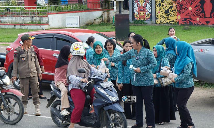 Suara Dayak.com, Puruk Cahu – Dalam rangka Semarak Hari Kesatuan Gerak PKK Ke-54 dan menyambut bulan suci ramadan, TP-PKK Kabupaten Murung Raya (Mura) berbagi ribuan takjil kepada masyarakat yang melintas jalan Jenderal Sudirman/ sekitaran bundaran emas Kota Puruk Cahu, Rabu (4/3/2026).