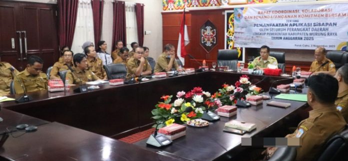 Suaradayak.com, Puruk Cahu – Pemerintah Kabupaten (Pemkab) Murung Raya (Mura) menggelar Rapat Koordinasi Pemanfaatan Aplikasi Sistem Informasi Pelaksanaan Pengendalian Pembangunan (SiSAPAN) yang dilaksanakan di aula A kantor Bupati Mura, Senin (3/11/2025).