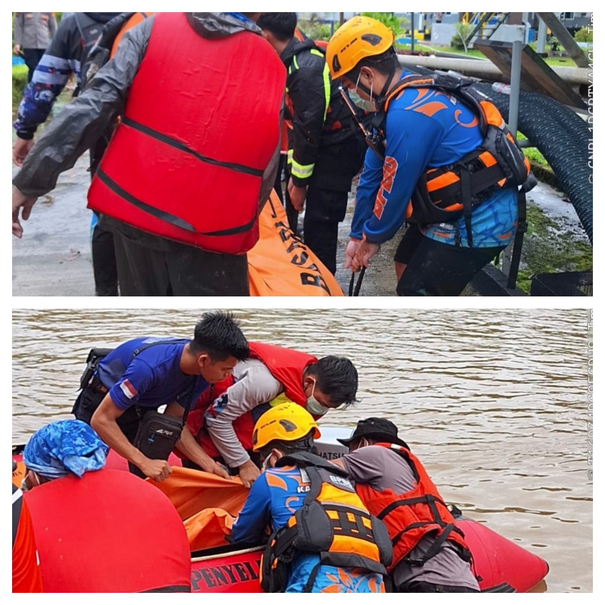 Kemudian korban kedua bernama Aleksandro Brianonggasa (25) ditemukan di areal PT Bina Karya sekitar 500 Meter dari titik awal tenggelam.