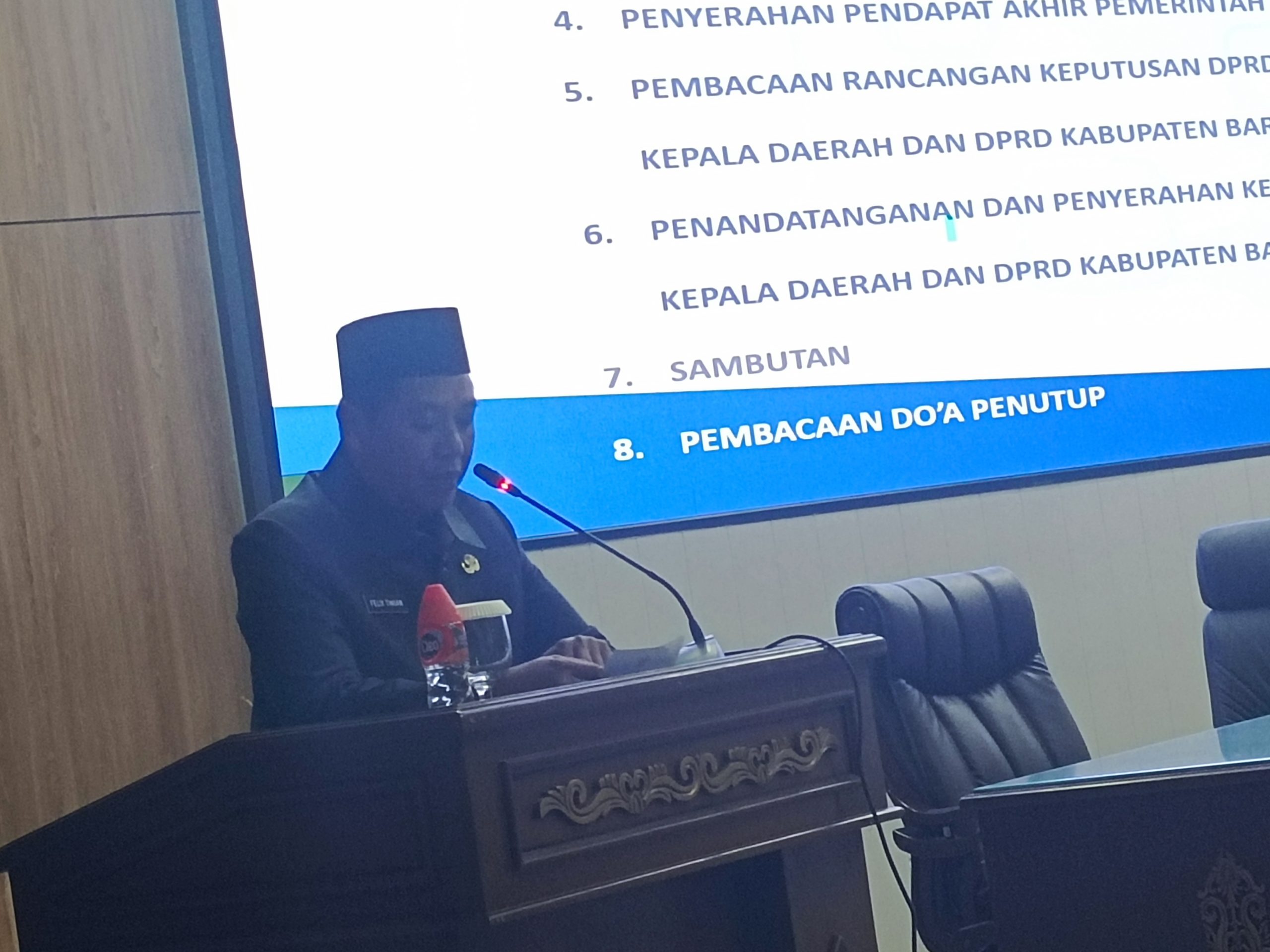 Felix membacakan pidato Bupati Shalahuddin bahwa bupati Barito Utara menyatakan menerima tiga raperda tersebut untuk disahkan menjadi perda.