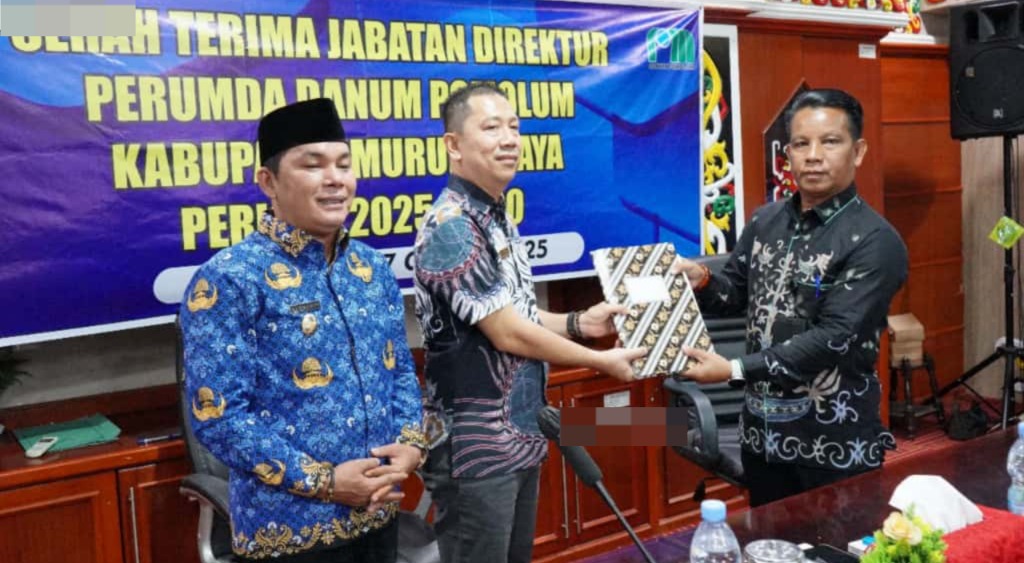 Suaradayak.com, Puruk Cahu – Jabatan Direktur resmi diserahkan dari Pelaksana Tugas (Plt) Direktur sebelumnya, Jayadie Y. Dadi, kepada Direktur baru, Kelong. Serah Terima Jabatan (Sertijab) Direktur Perusahaan Umum Daerah (Perumda) Danum Pomolum Kabupaten Murung Raya dilaksanakan pada Jumat (17/10/2025).
